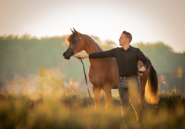 A distinguished stallion recognized internationally for exceptional type, neck, and movement. He has produced multiple champion offspring worldwide.